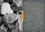 生产情况:生产现场紧邻河道,原料尺寸40mm, 成品要求0-5mm。