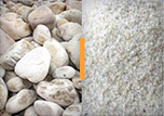 鹅卵石经由给料机送入颚式破碎机作粗碎处理,破碎后分别进入圆锥式破碎机进行中细碎作业,然后由输送机送到制砂机进行制沙作业,加工后的鹅卵石沙料要通过振动筛分级后得到所需求规格石子。符合用户生产需要的送至成品堆,若大小不规格,则返工重新破碎制砂,直到符合要求。(对成品含杂质较多的物料可配置洗砂机进行品质升级)